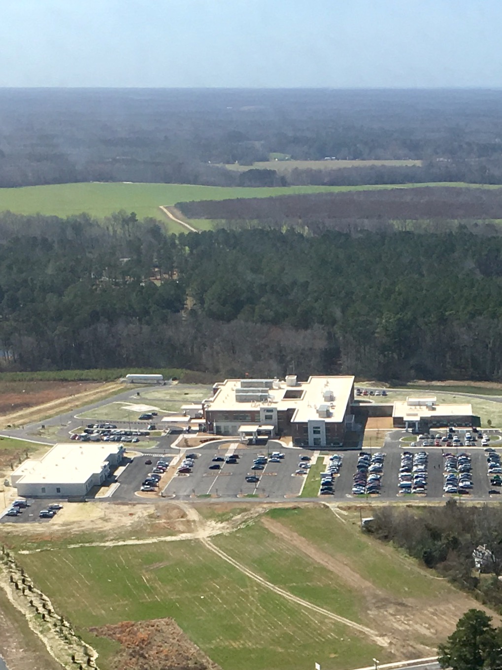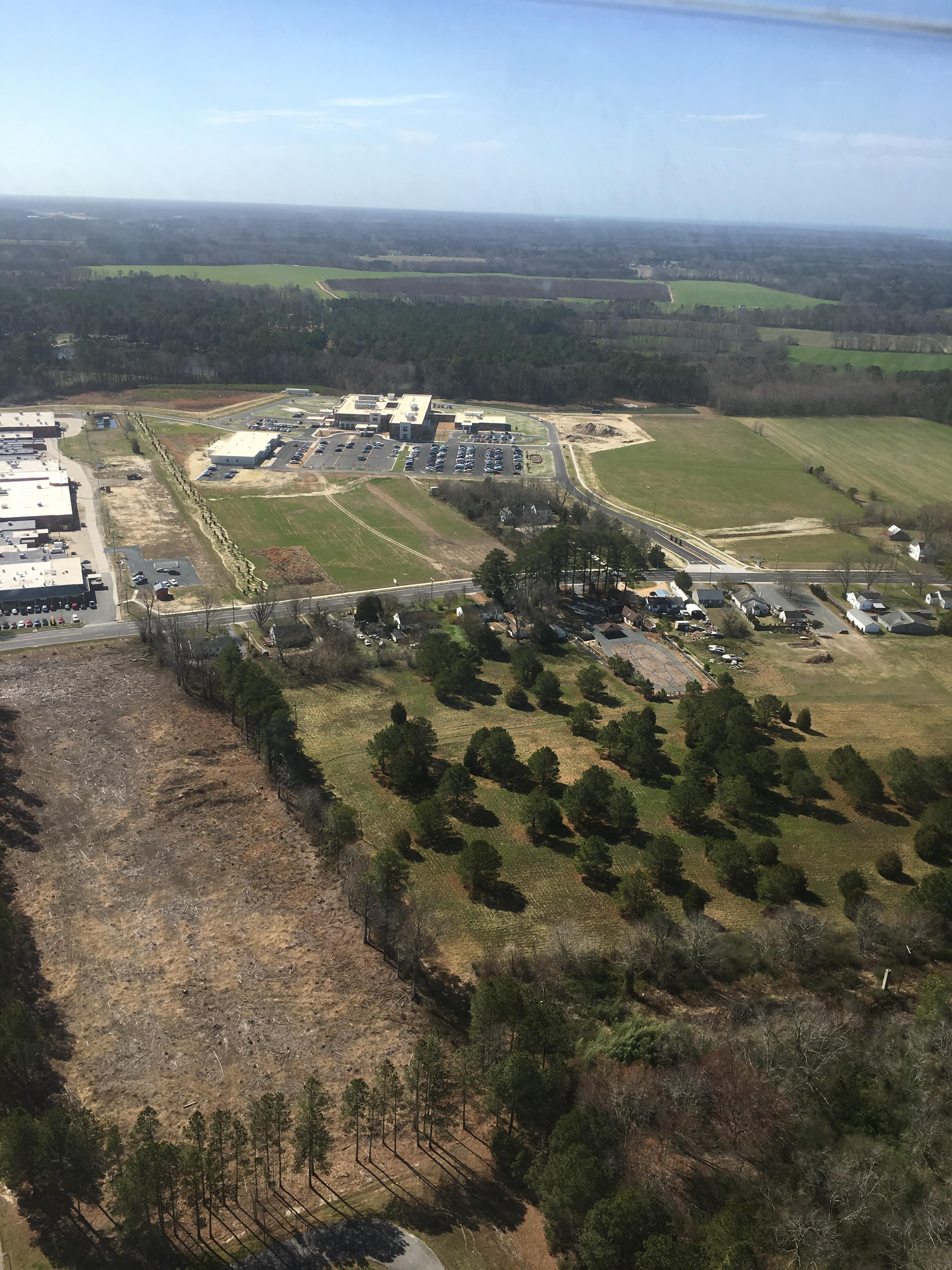 Hazards: On approach you will have two 338' MSL towers off to your left. They are out in the country south of the town of Onancock. North of the new hospital is a private grass airfield. It looks active based on Google street view and aerial maps. There is a Piper Cherokee registered to the owner that looks like it is based at the field. East of the hospital is Highway 13 and a strip mall. It looks clear of towers and other obstructions. South of the hospital a mile or more is one large tower along the highway as well as the Accomac County Airport. The airport looks similar in activity to many GA airports. They report 38 movements per day, 5-6 are IFR movements. Aircraft range from Cessna Citation jets down to Cessna 172's.